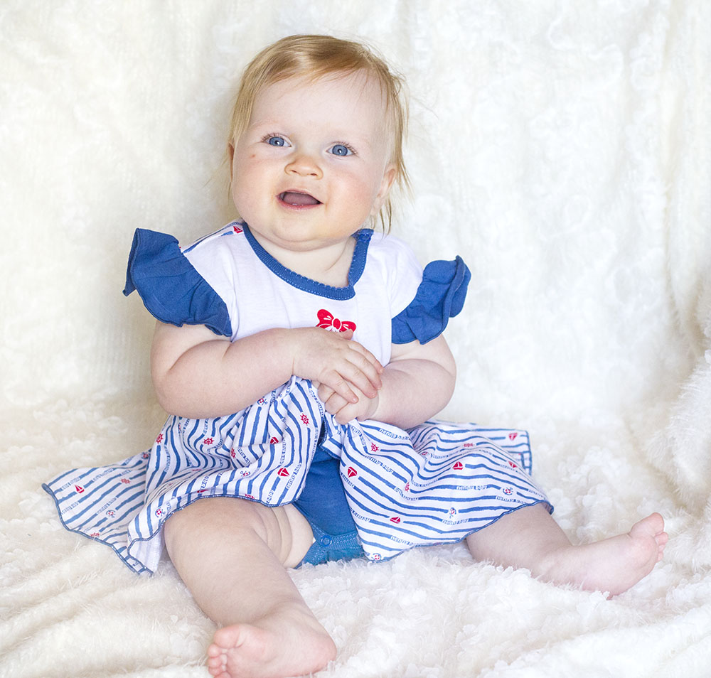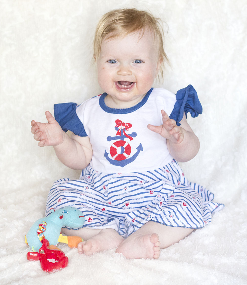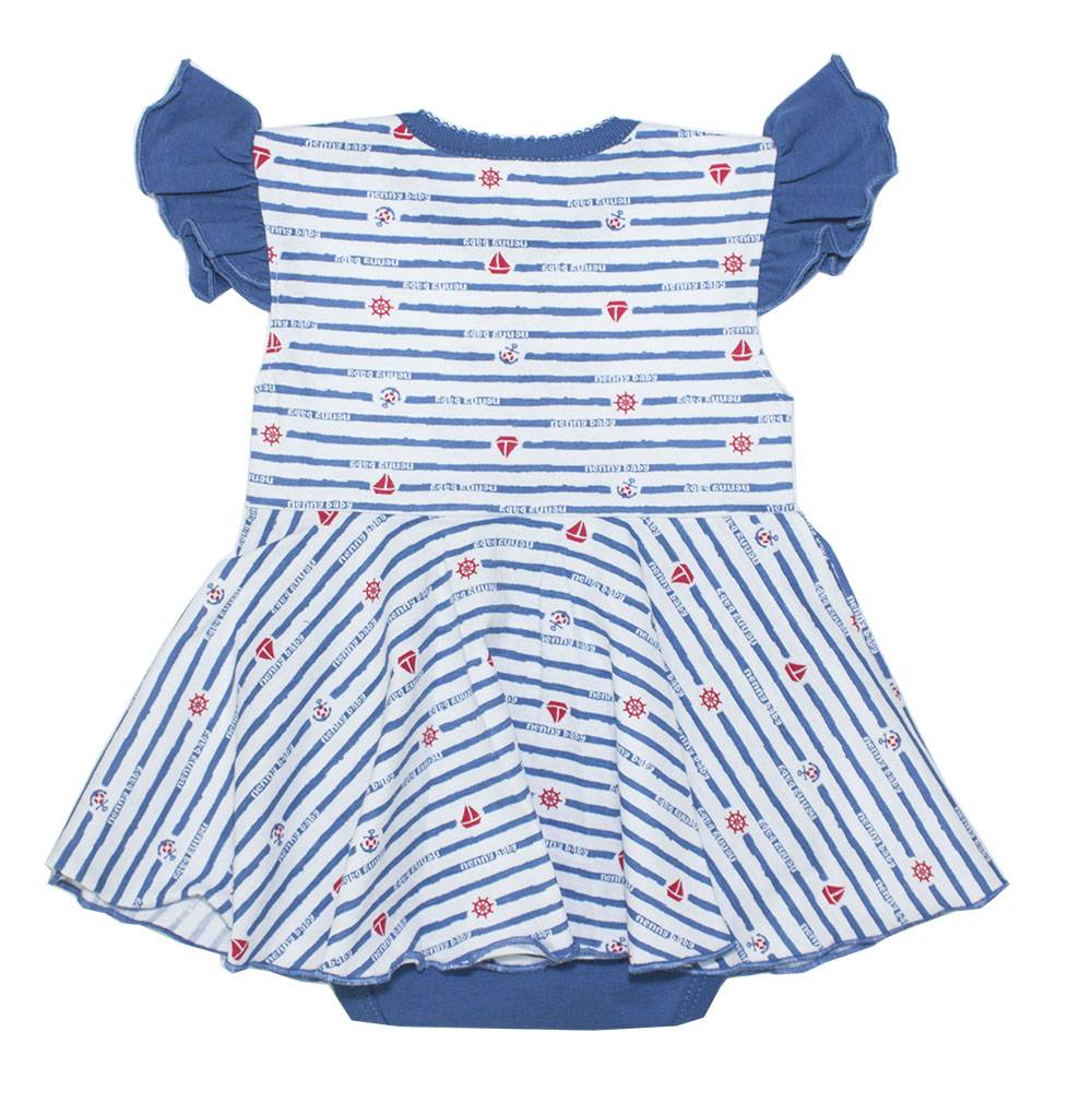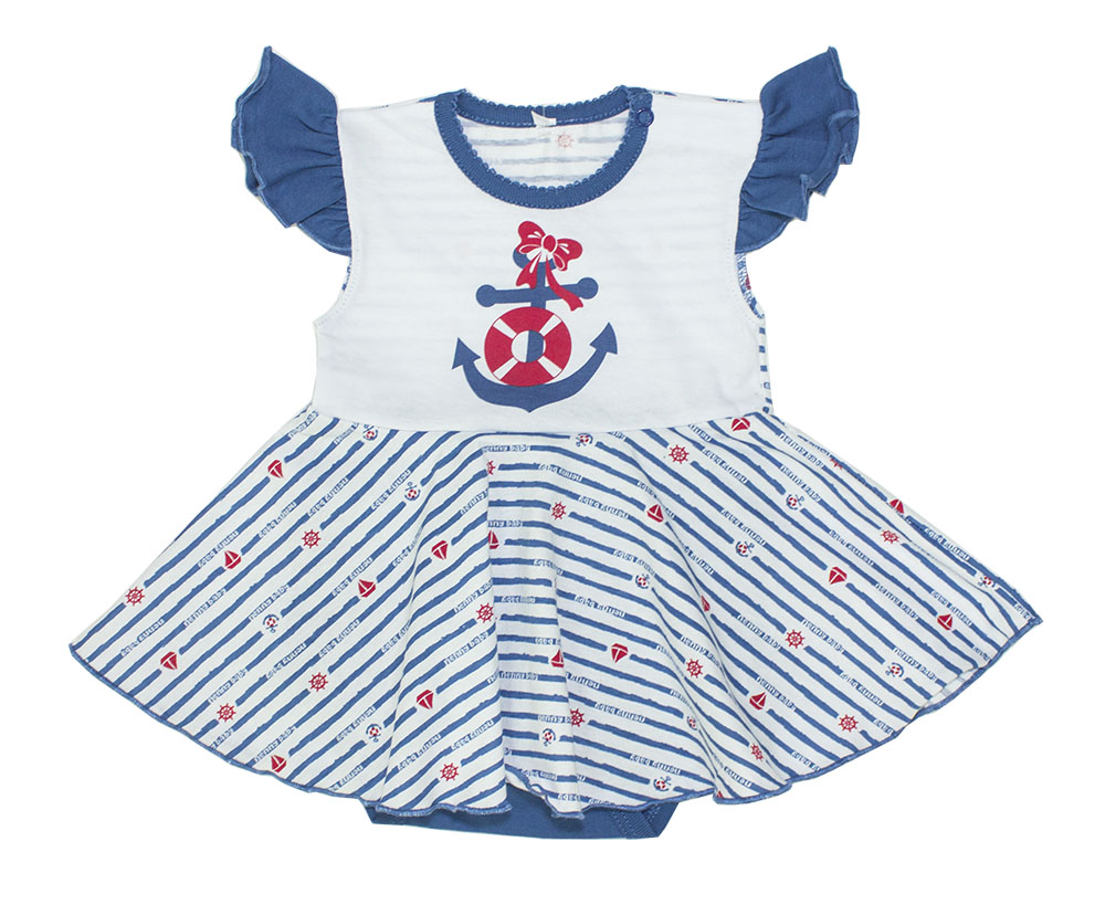 Летнее боди для девочек из тоного трикотажного полотна кулира - 100% хлопок, с расклешенной юбочкой и печатным рисунком якорь. Без рукавов, но с коротенькими оборочками. В таком боди малышка будет себя чувствовать комфортно. Прекрасно для летней погоды и для фотосессий!