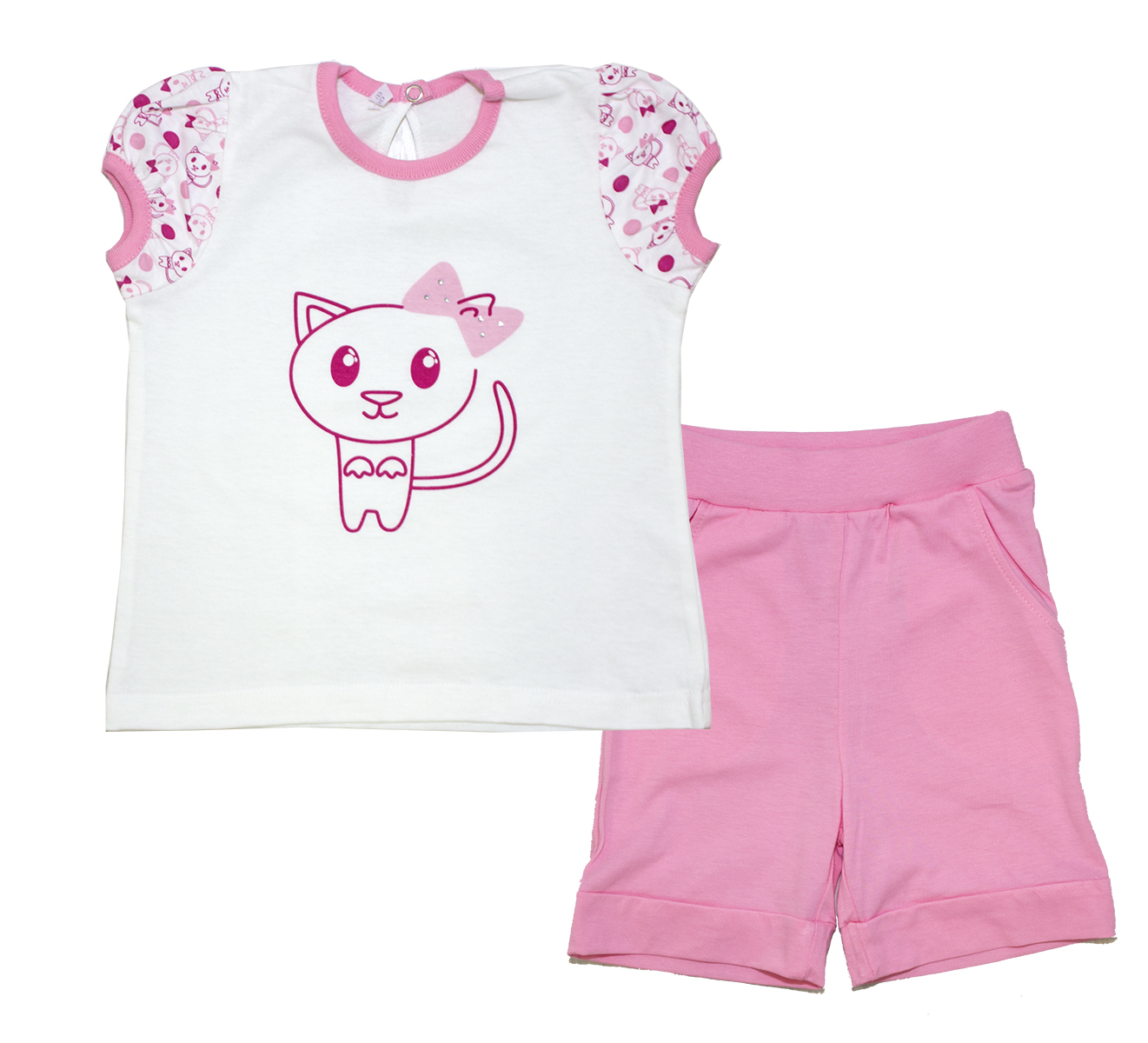 118-371П Комплект для девочки футболка и лосины "Этно-кошки" (26/92 - Розовый) |