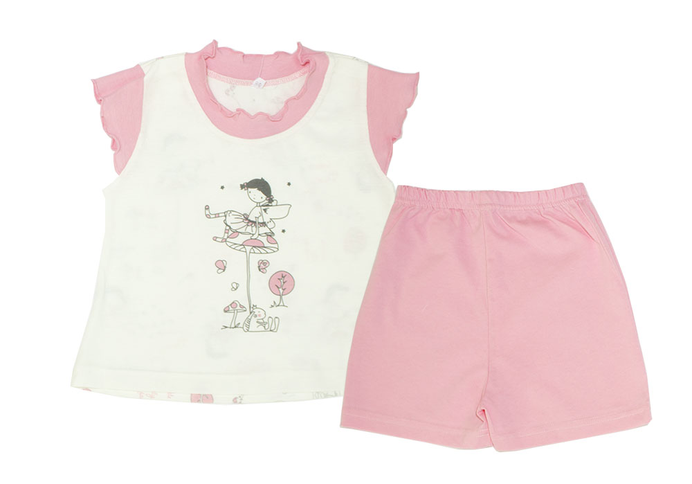 118-65П Комплект для девочки: футболка и шорты "ФЕЯ" (30/116 - молочный с розовым) |