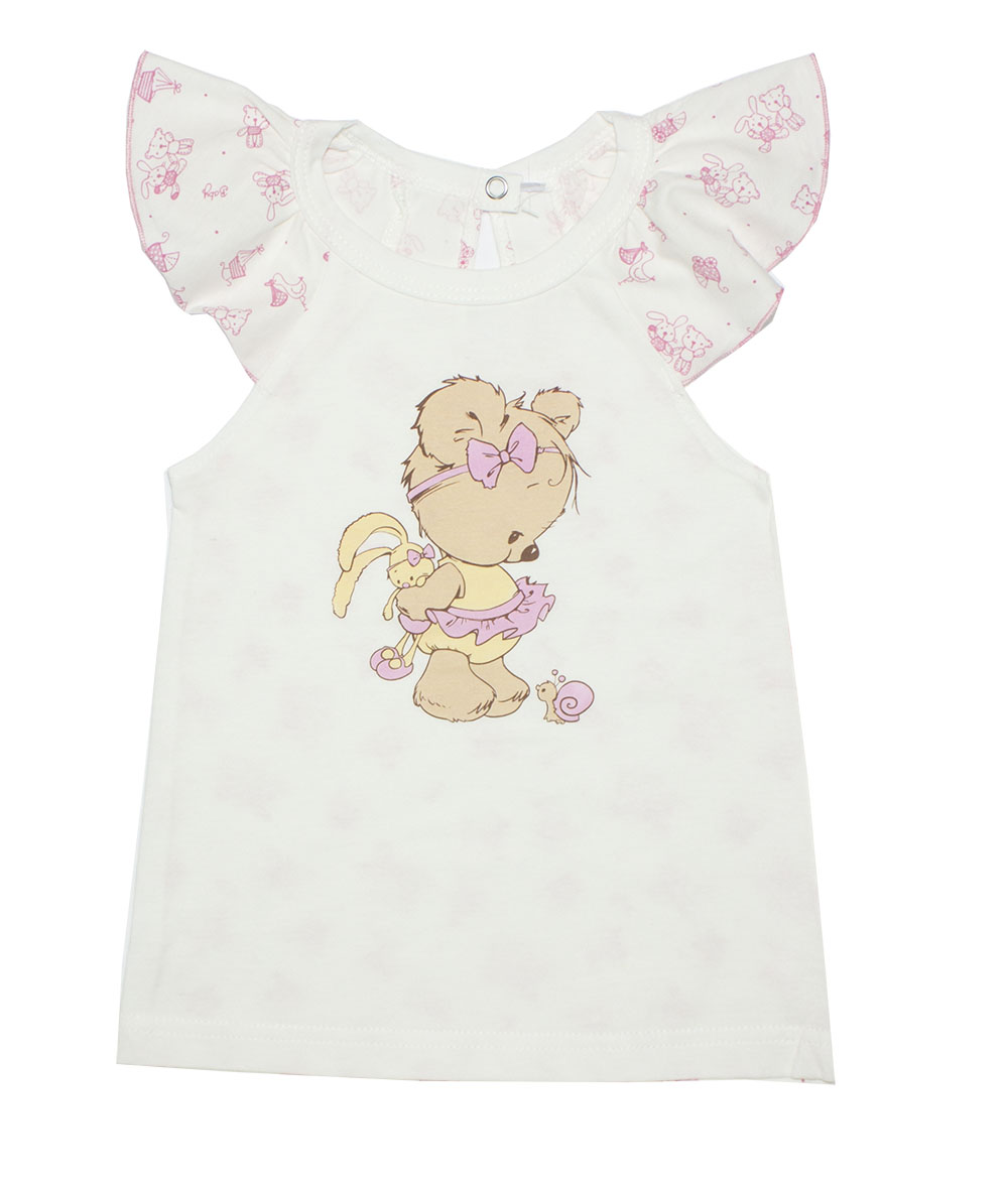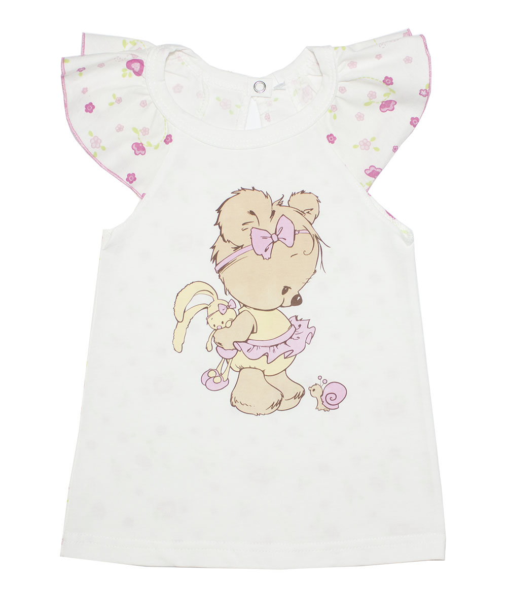 Платье летнее из коллекции "Мишки Слоники". Выполнено из кулира 100% хлопок - легкое дышащее. С печатным рисунком Мишка. Коротенькие рукава-оборочками.