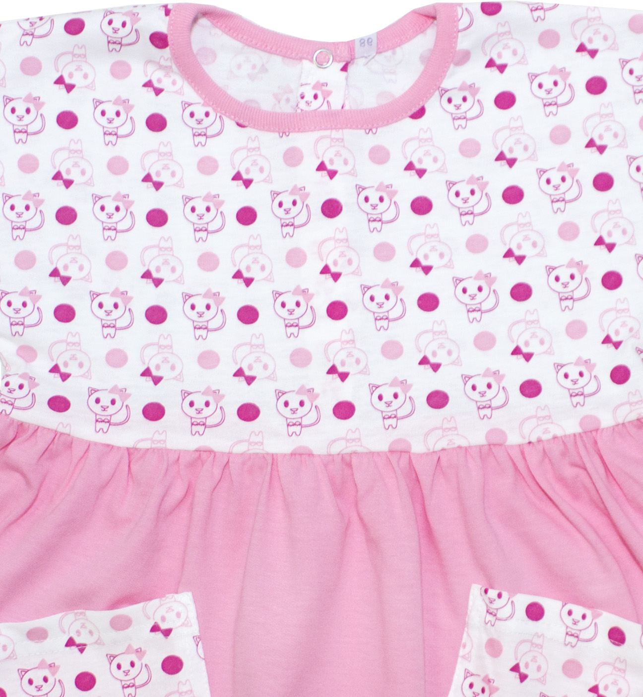 Летнее платье для девочки. Очень удобное, легкое, дышащее. Застегивается на кнопки на спинке. Спереди 2 кармашка. Подходит летом для повсдедневной носки, а зимой для дома или в садике. Рисунок с розовыми кошками - самый модный тренд этого сезона.