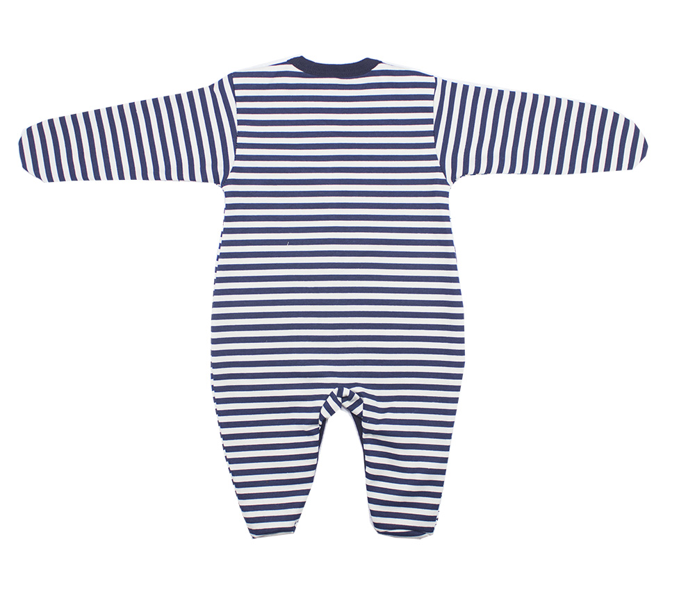 Яркий комбинезон из трикотажного интерлока высшего качества (100% хлопок). Манжеты на рукавчиках выполнены из рибаны. Полосатая расцветка порадует и малыша, и родителей. У комбинезона есть кнопки от верза до низа, до самых стоп, что делает его очень удобным прираздевании и одевании малыша.