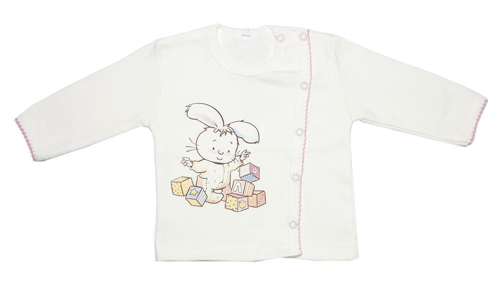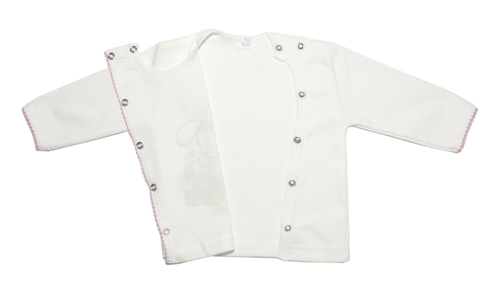 303-28ПК Кофточка на запах на кнопках "Ушастики" (20/62 - молочный с розовым) |