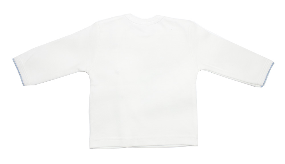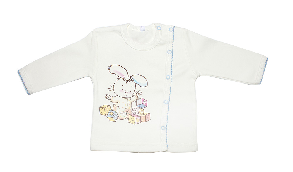 303-28ПК Кофточка на запах на кнопках "Ушастики" (20/62 - молочный с голубым) |