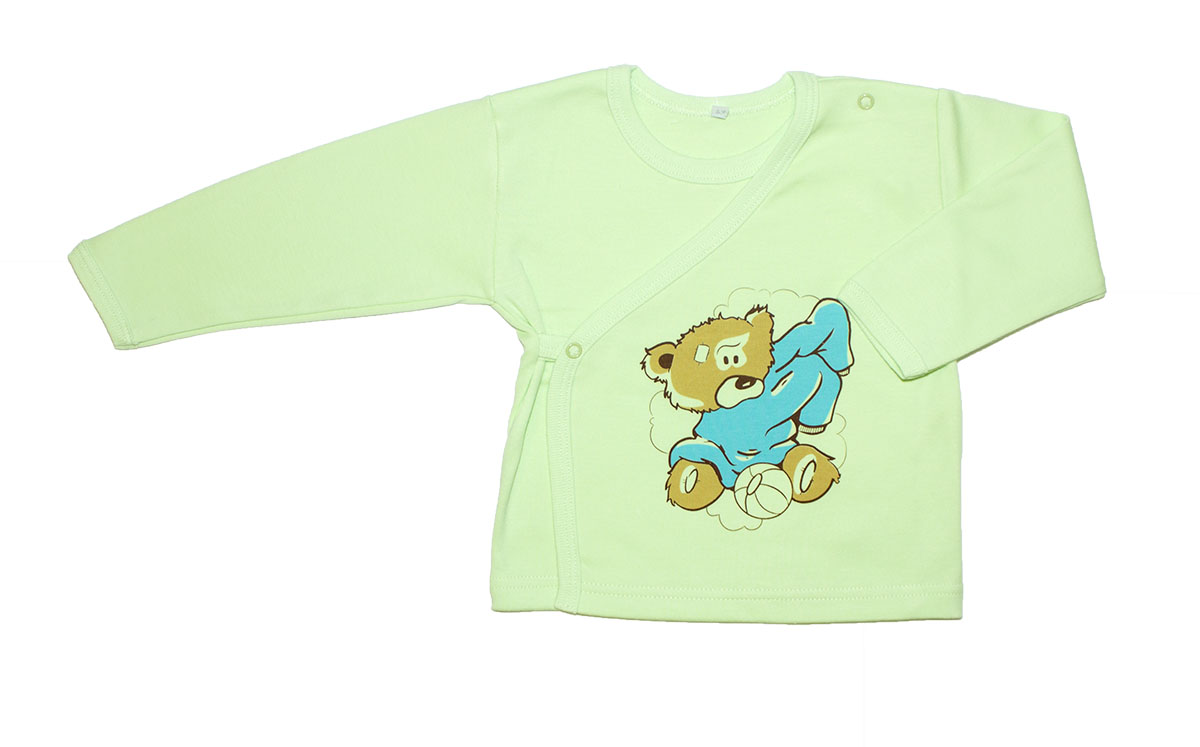Кофточка, длинный рукав, на кнопках. Застегивается на запах. Оригинальный печатный рисунок "Мишка".