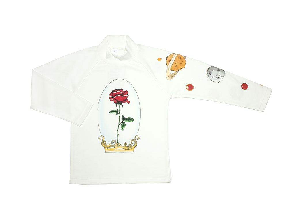 Джемпер для девочки из коллекции выполнен из интерлока 100% хлопок. Воротник-стойка закрытый. Украшен печатными рисунками на рукаве и впереди.