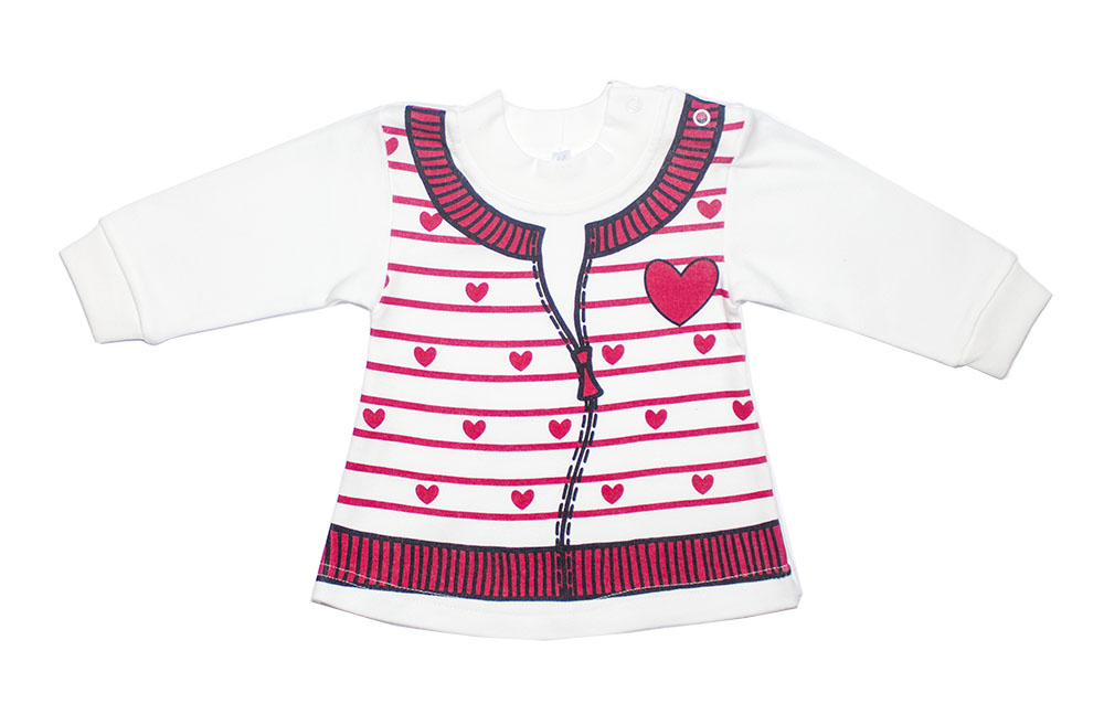 Джемпер для девочки из интерлока с длинным рукавом с печатным рисунком. Удобные кнопки на плечиках делают джемпер очень удобным для одевания малышки. Малышу удобно и комфортно.
