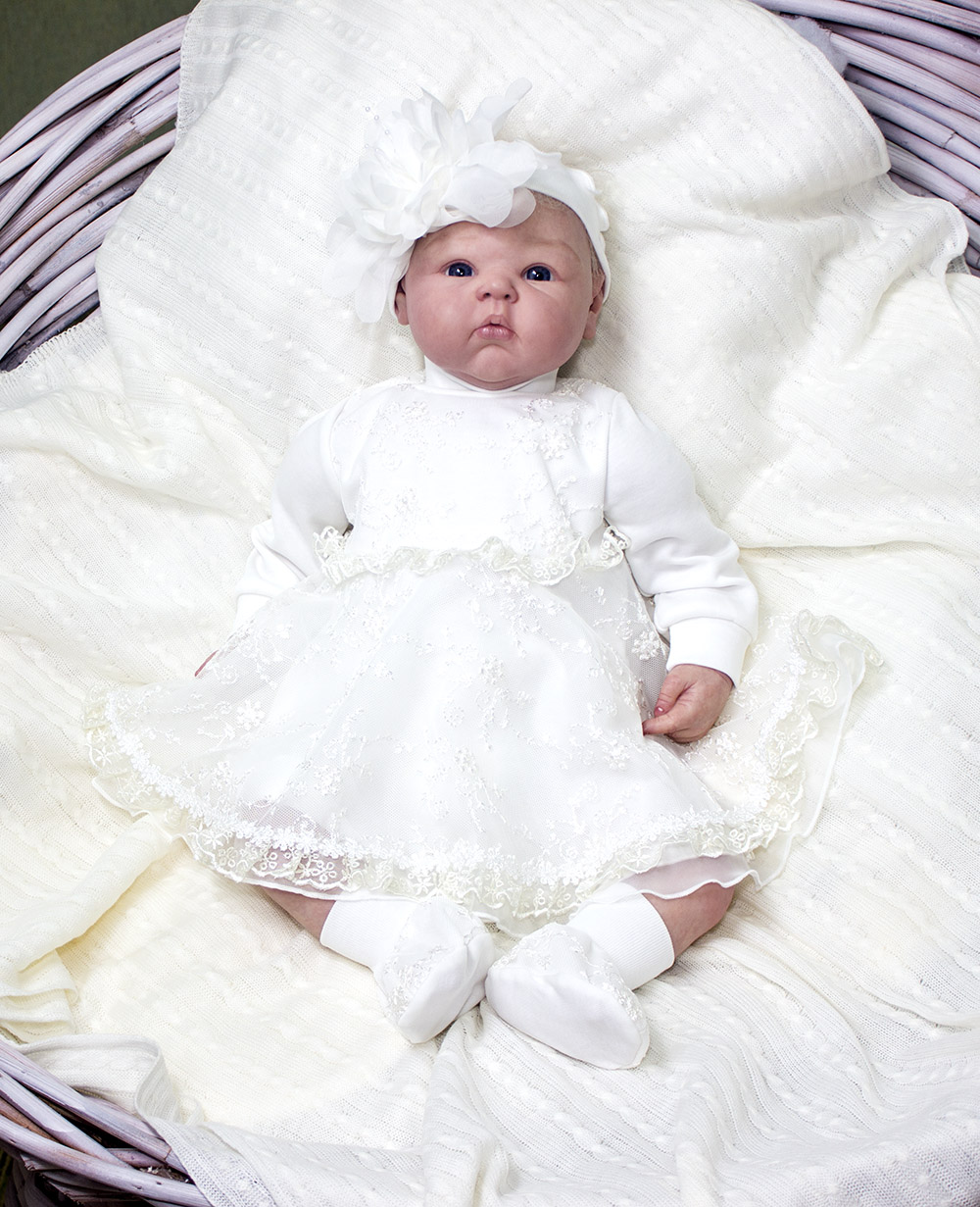 318-284 Комплект 3-х предм:платье, пинетки,повязка на голову