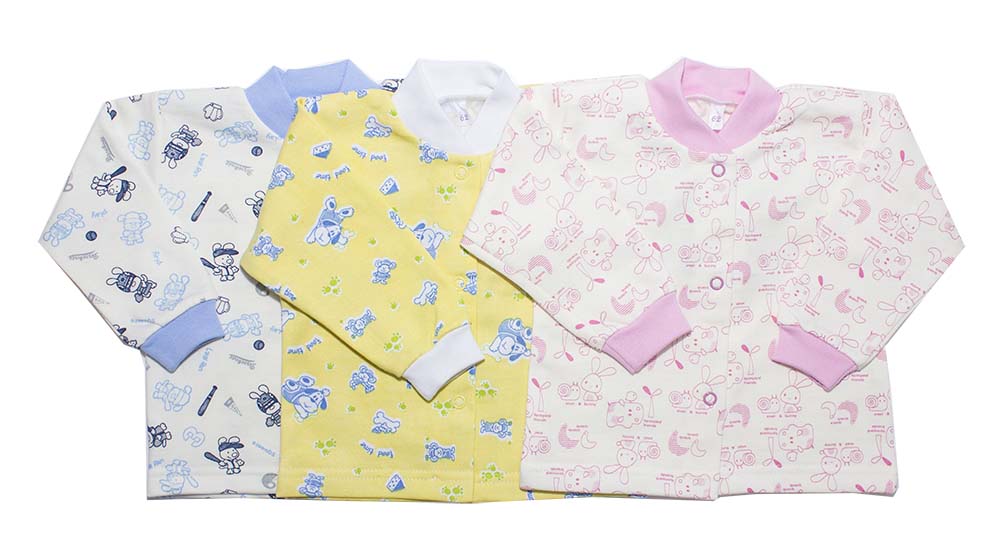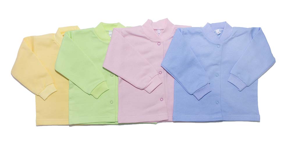Кофточка с воротником из футера (100% хлопок). Футер - мягкий теплый прочный и долговечный материал, не выстирывается и не скатывается. Ворсистой стороной внутрь для комфорта малыша. Застегивается на кнопки.