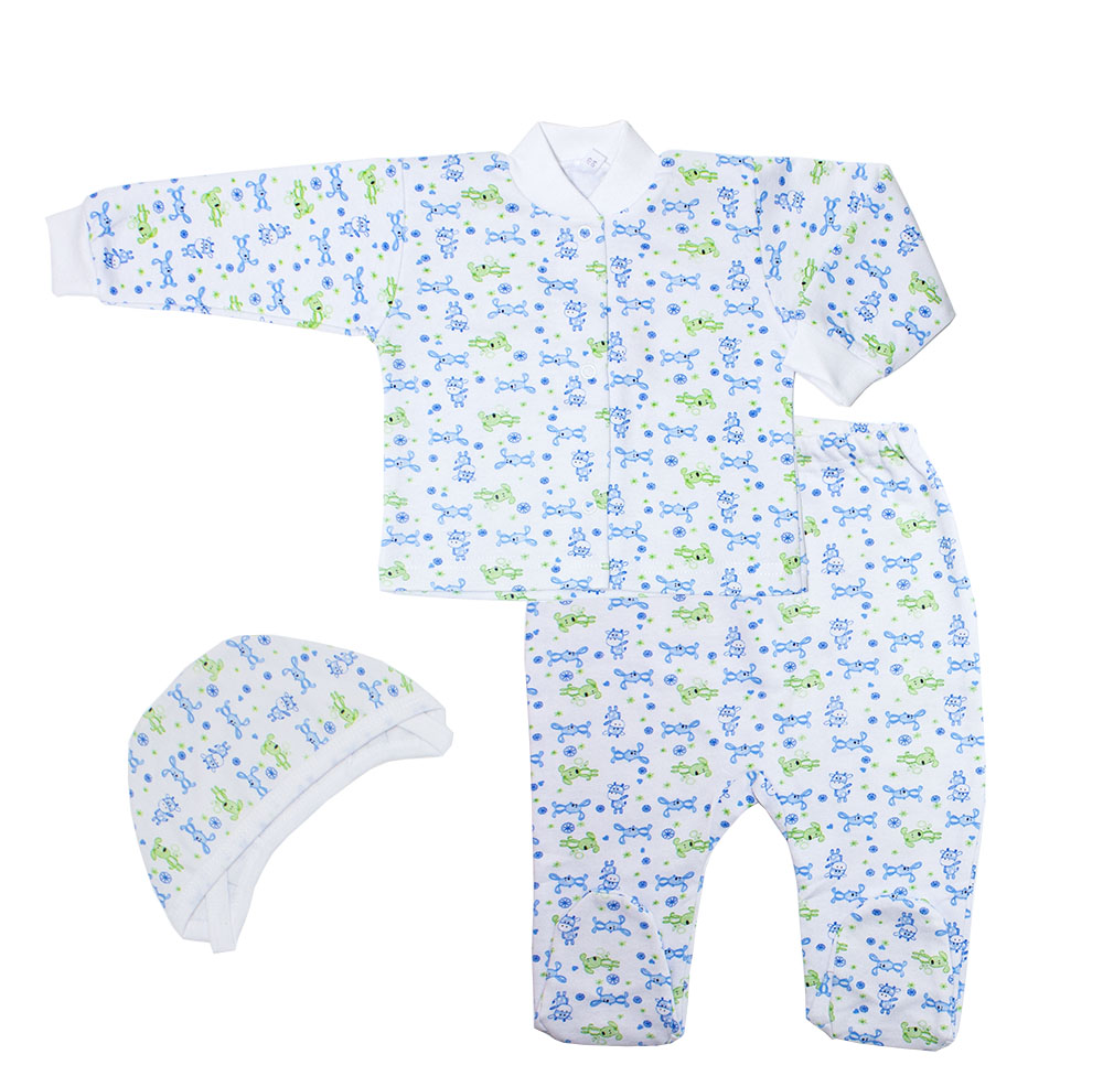 418-01 Комплект 3-х предметный футер: ползунки,кофточка,чепчик мальчик (20/62 - универсальный) |