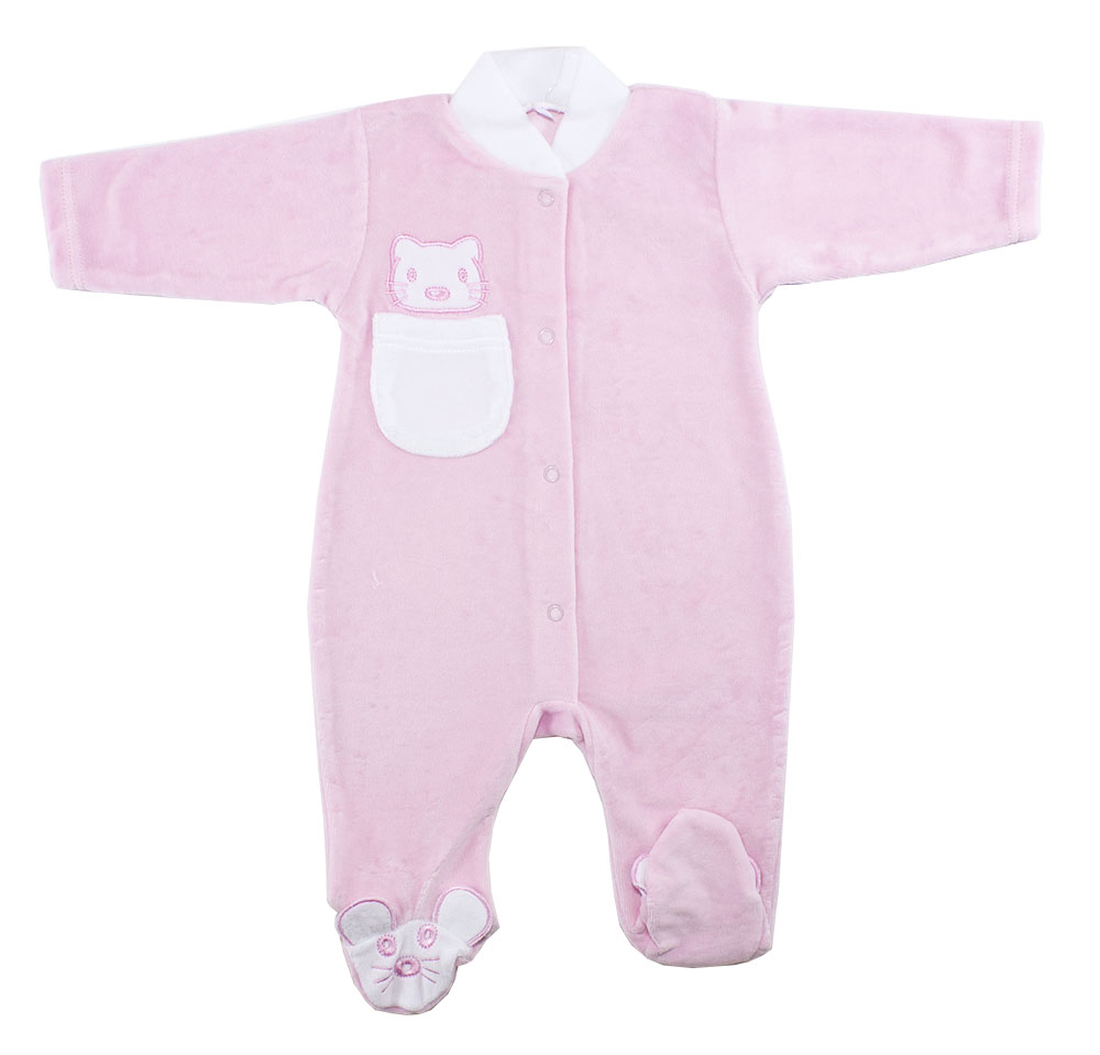 Комбинезон из мягкого велюра на кнопках. Вышивки на груди "Кошка" и на носочках "Мышка" поднимут настроение маме и малышу. Яркие разные расцветки подойдут на любой вкус. Кнопки у комбинезона снизу доверху, поэтому очень удобно его снимать и одевать.