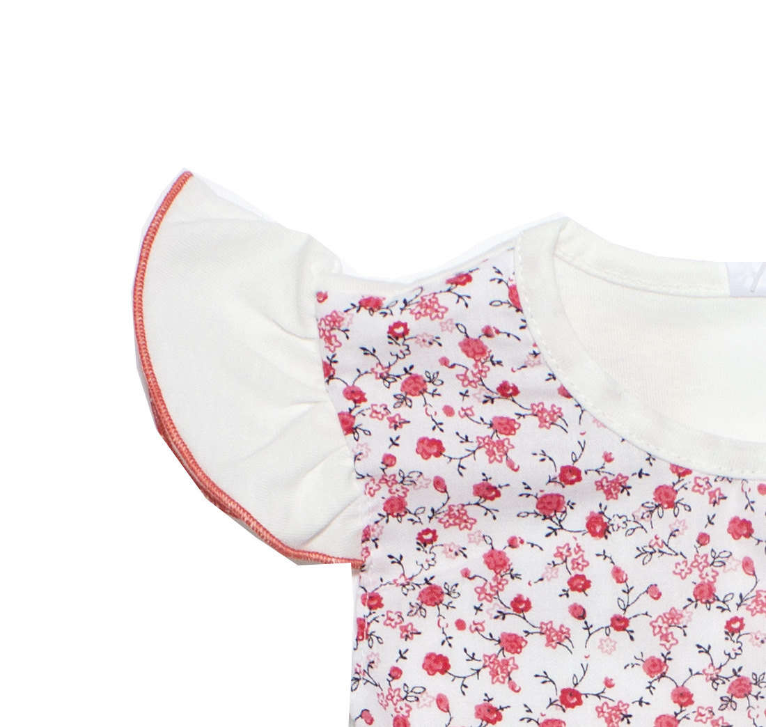 Боди для девочки из кулирной глади молочного цвета (100% хлопок) без рукавов с оборками. Яркая вставка с цветочным рисунком из террикотона (70% хлопок). Яркое боди для лета - легкое и мягкое. Легко стирать и гладить.