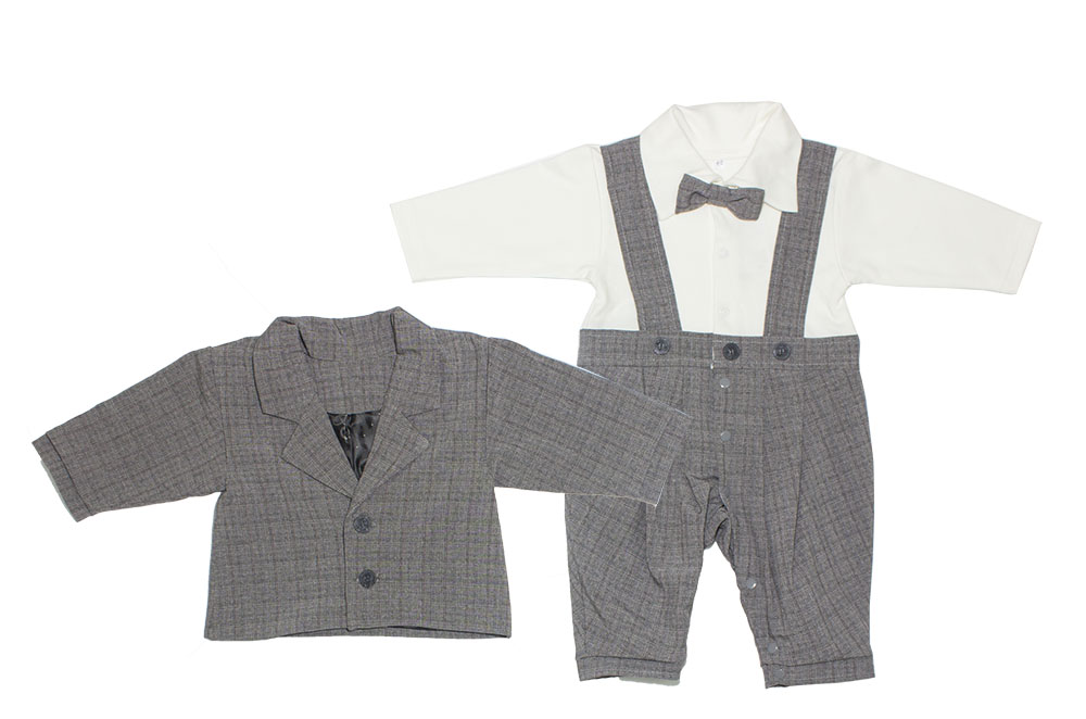 | 85-18307А Комплект для мальчика полукомбинезон и пиджак "Хочу в школу" (20/62 - молочный с серым) |