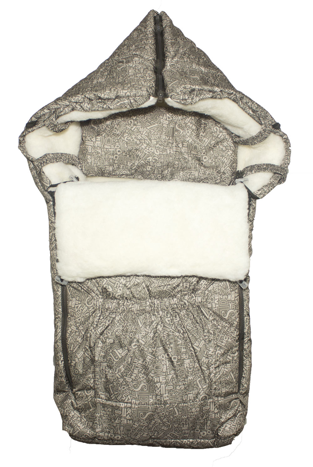 | К102 Конверт прогулочный с капюшоном на молнии (мех) (18/56-20/62 - коричневый с буквами) |