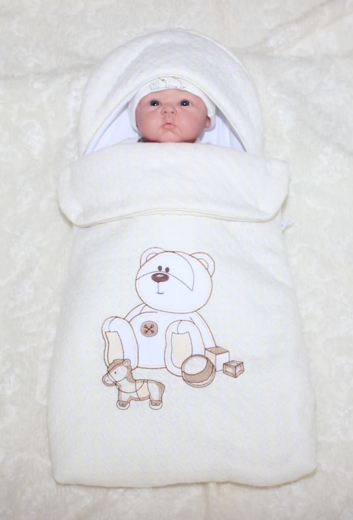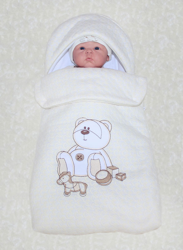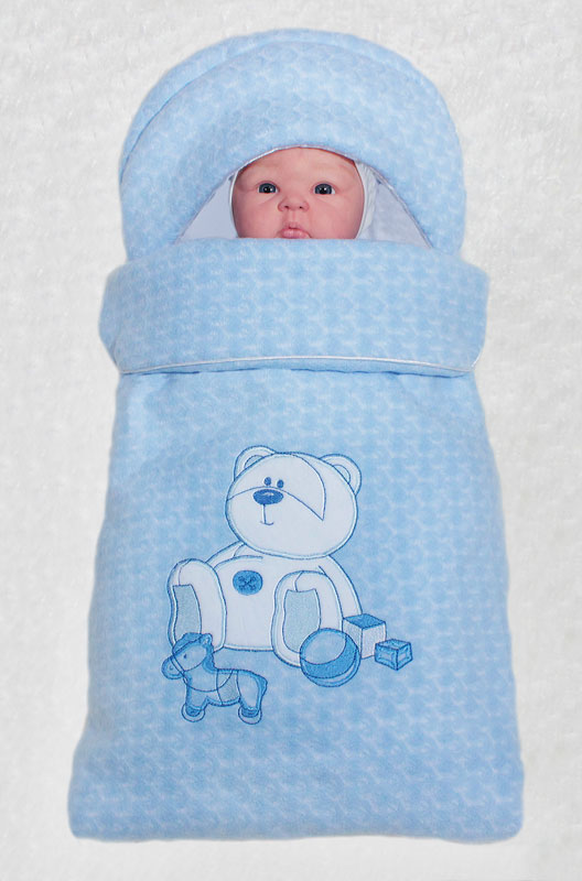 К208 Конверт с кап. на молниях "Мишка с игрушками" (18/56-20/62 - голубой) |