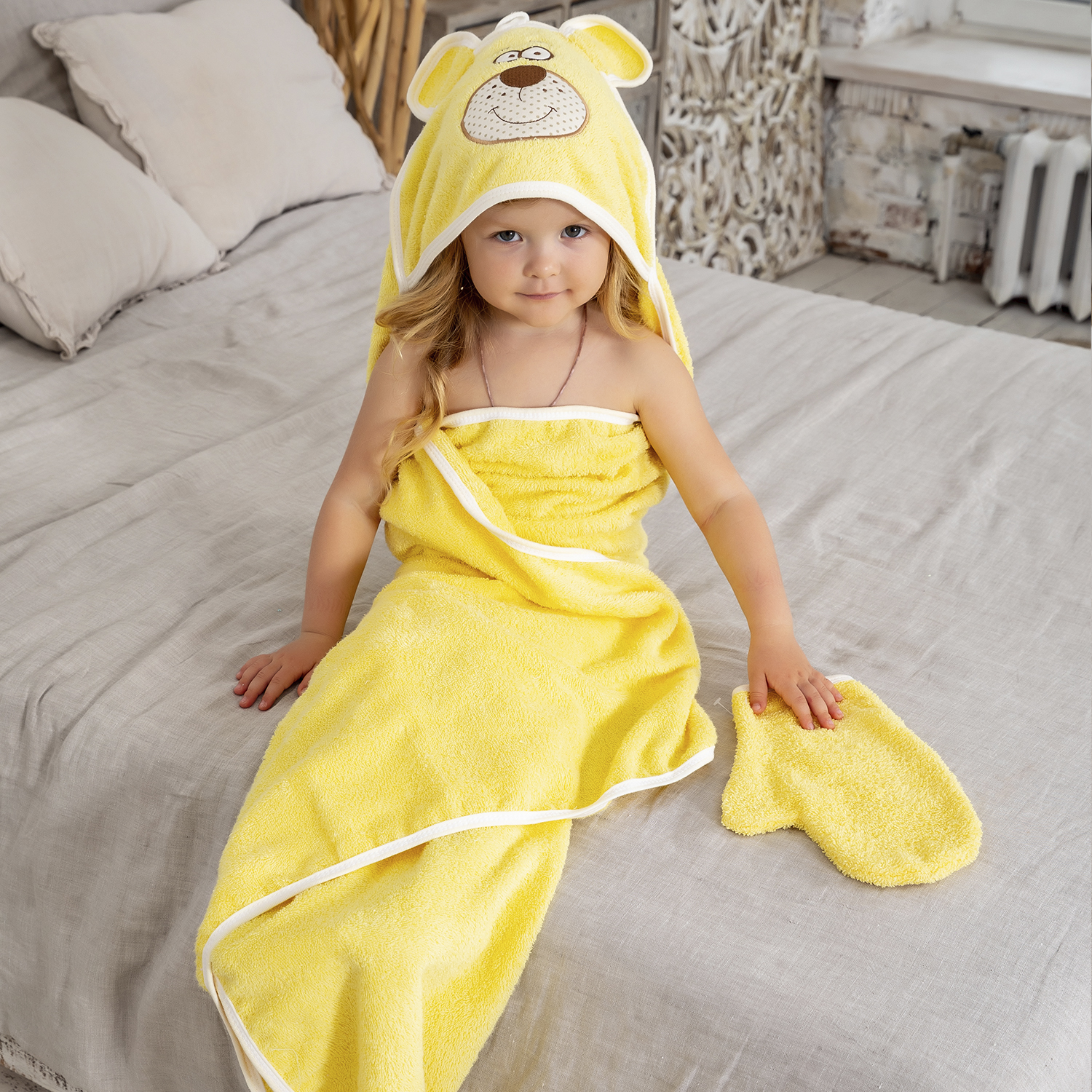 | К24/1 Полотенце-уголок махровое с вышивкой "Мишка" 100*110 (желтый) |