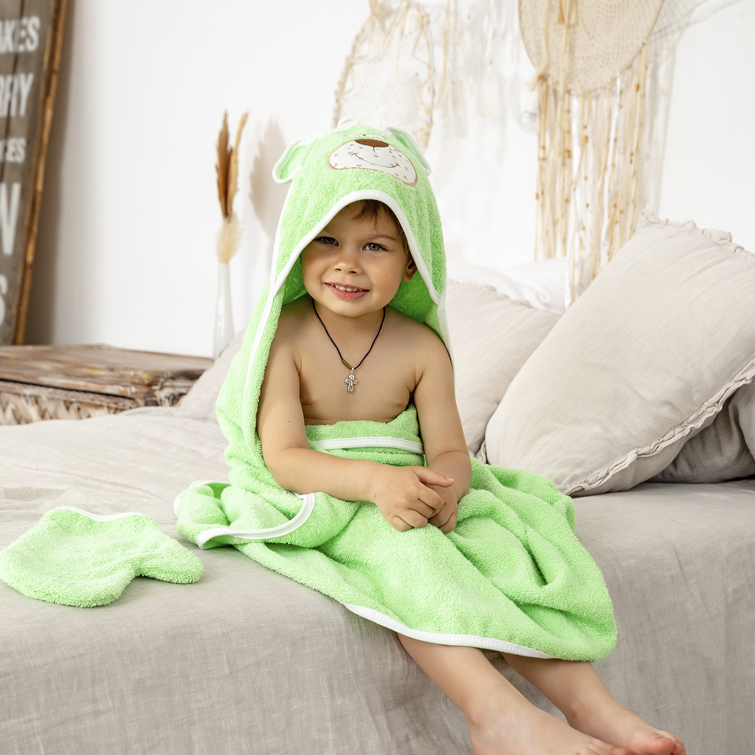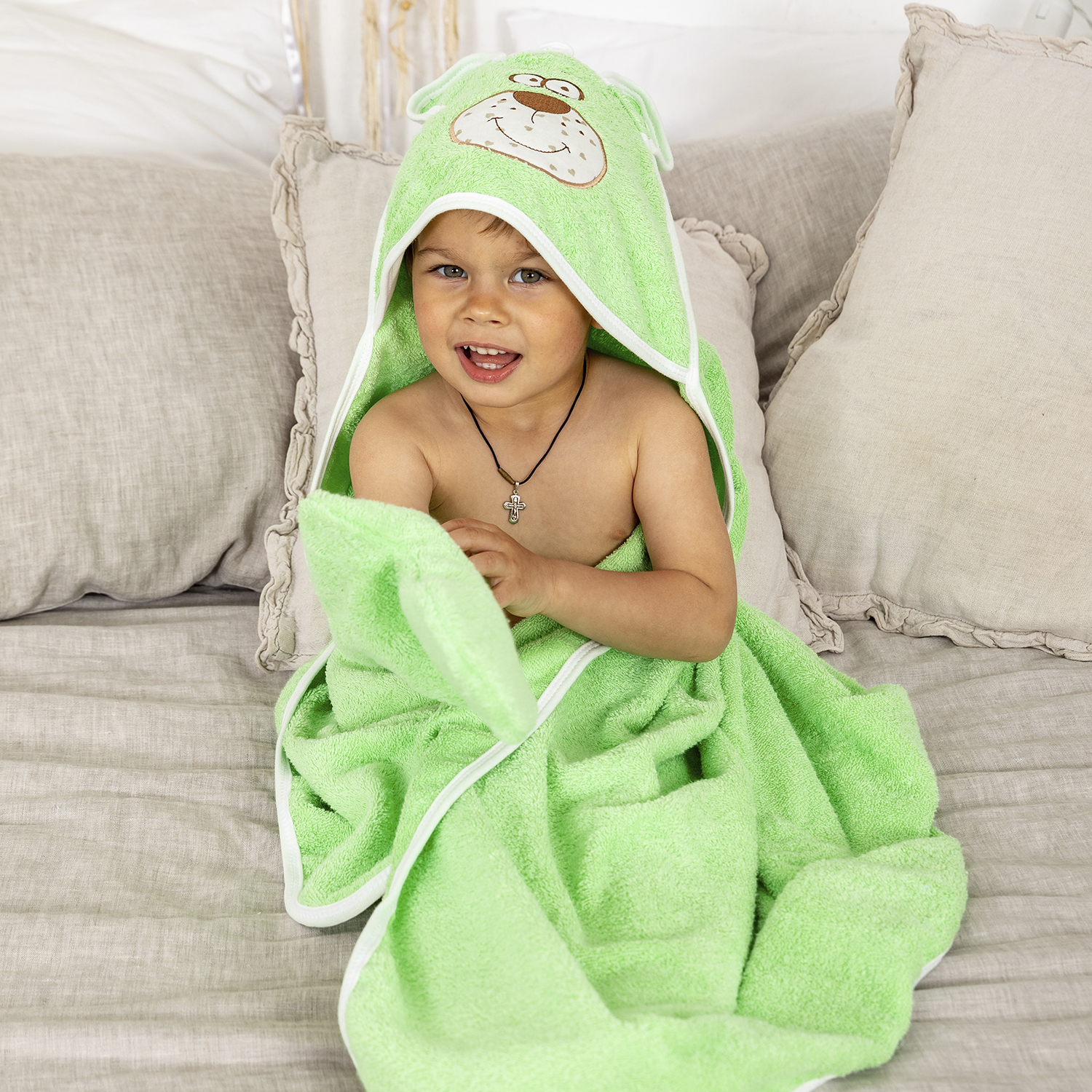 Махровое полотенце с уголком для малышей с вышивкой "Мишка" на уголке. Окантовка в тон по всему полотенцу и уголку. Универсальный размер подойдёт для малышей до 3 лет.Плотность махры 340гр. Обладает высокой впитывающей способностью и быстро сохнет. Хлопковая махровая ткань обеспечивает оптимальное сочетание гигроскопичности и лёгкости полотенца. В дополнение к полотенцу идет махровая рукавичка для влажных обтираний. Прекрасно подойдёт для душа, бани, бассейна и на пляж. Объёмный капюшон согреет и защитит от ветра, придаст дополнительное очарование. Может использоваться и как банное полотенце для дома и как пляжное полотенце в поездках и путешествиях. Идеально подходит в подарок, на день рождения, на торжество.Выдерживает многократные стирки, не теряет форму и цвет.Банное полотенце для малышей представлено в нескольких цветовых вариациях, можно выбрать полотенце, которое подойдет именно для Вашей ванной комнаты.