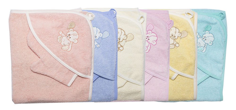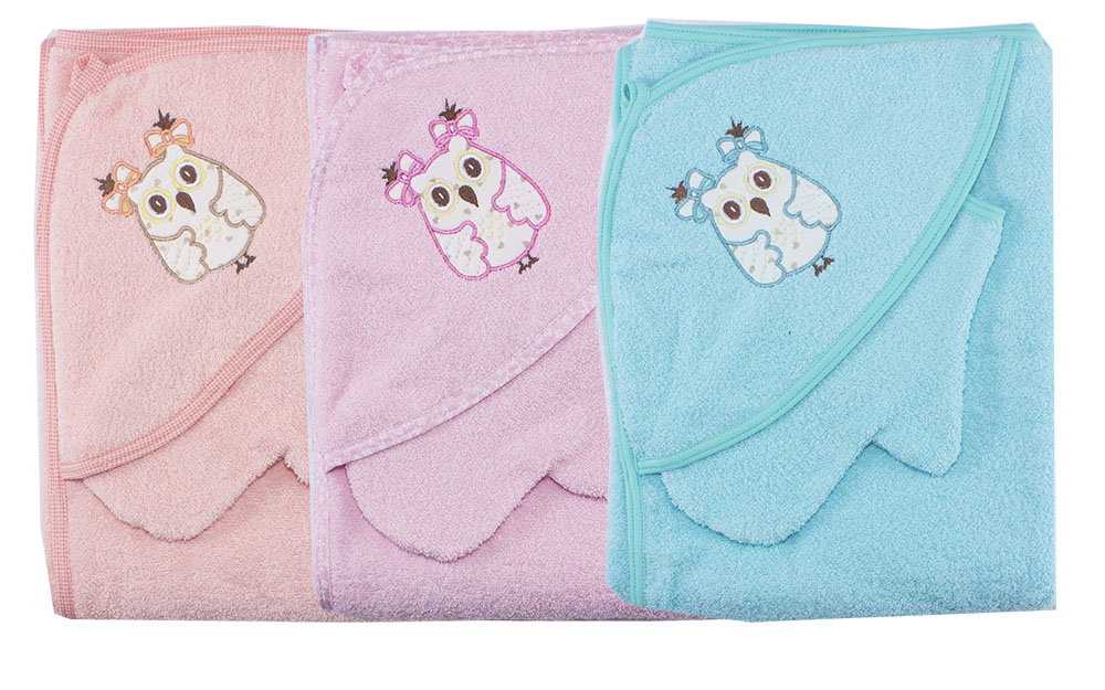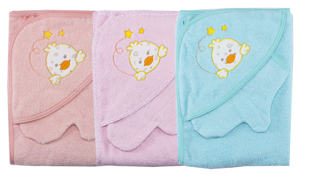 Махровый полотенце с уголком для малышей с вышивкой: "Утенок", "Лягушонок", "Сова", "Мишка". Окантовка в тон по всему полотенцу и уголку. Универсальный размер подойдет для малышей до 3-4 лет. Плотность махры 340гр. Обладает высокой впитывающей способностью и быстро сохнет. Хлопковая махровая ткань обеспечивает оптимальное сочетание гигроскопичности и лёгкости полотенца. В дополнение к полотенцу идет махровая рукавичка для влажных обтираний. Прекрасно подойдёт для душа, бани, бассейна и на пляж. Объёмный капюшон согреет и защитит от ветра, придаст дополнительное очарование. Может использоваться и как банное полотенце для дома и как пляжное полотенце в поездках и путешествиях. Идеально подходит в подарок, на день рождения, на торжество. Выдерживает многократные стирки, не теряет форму и цвет.Банное полотенце для малышей представлено в нескольких цветовых вариациях, можно выбрать полотенце, которое подойдет именно для Вашей ванной комнаты.