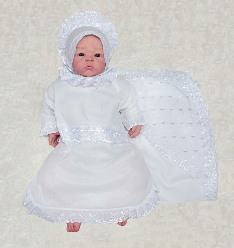 | К2 Комплект (крестильный) для девочки платье, чепчик, пеленка (нарядная) 80*80 (22/68-24/74 - белый) |
